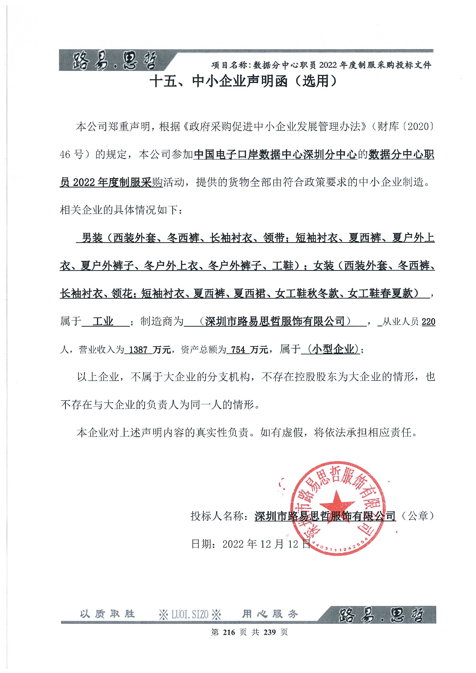 八、其他補充事宜:中標供應商《中小企業(yè)聲明函》見附件。