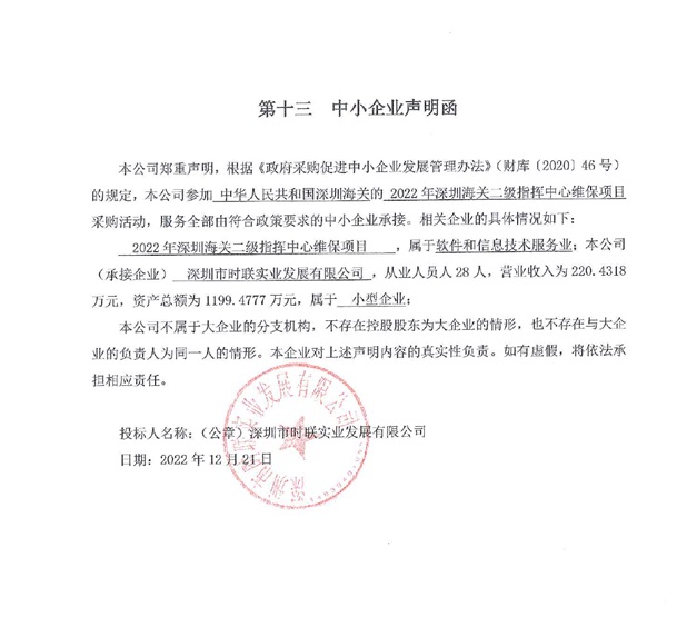 | 名 稱:2022年深圳海關(guān)二級指揮中心維保項目 服務(wù)范圍:詳見招標(biāo)文件 服務(wù)要求:詳見招標(biāo)文件 服務(wù)時間:自合同簽訂之日起365日歷日內(nèi)。 服務(wù)標(biāo)準(zhǔn):詳見招標(biāo)文件 |